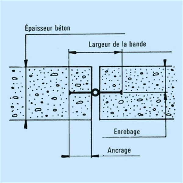 - Les pattes d’ancrage, bourrelets, queues de carpe, stries qui interviennent dans la géométrie de l’Élastojoint assurent l’ancrage des joints dans le béton et sont autant d’obstacles au cheminement de l’eau (principe du labyrinthe).