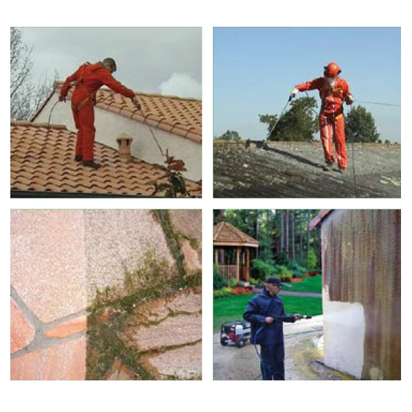 Pulvériser sur le support, son action est immédiate puis rincer à l’aide d’un nettoyeur haute–pression (réglé au minimum). Vous pourrez obtenir un résultat équivalent en utilisant l’eau de pluie comme eau de rinçage.