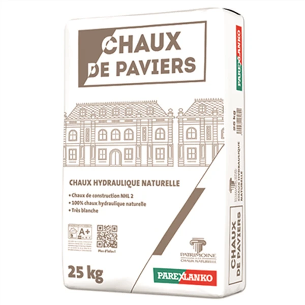 La Chaux de Paviers de Parexlanko est une chaux hydraulique naturelle blanche NHL2 conforme à la norme des chaux de construction NF EN 459-1, destinée à la réalisation de :
