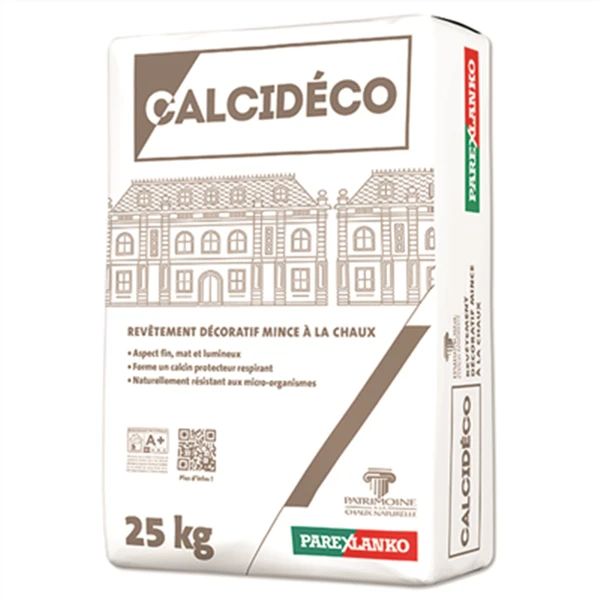 Le Calcidéco de Parexlanko est un parement minéral, également appelé micro-enduit, mince et au grain très fin, teinté dans la masse, composé à 100% chaux aérienne.
