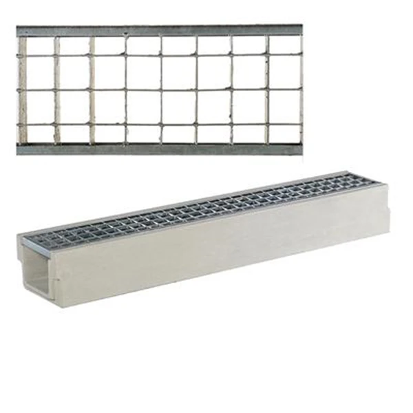 Caniveau en béton allégé, avec grille caillebotis en acier galva (maille 30×30), destiné à la collecte et à l’évacuation des eaux pluviales. Ils ont une peau de surface lisse qui favorise l’écoulement.